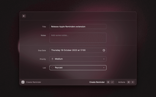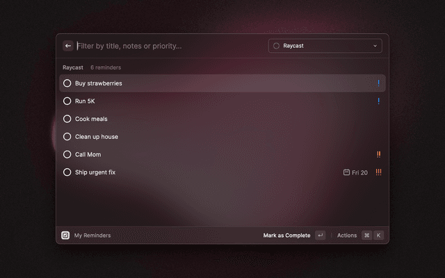 Manage Apple Reminders from within Raycast: